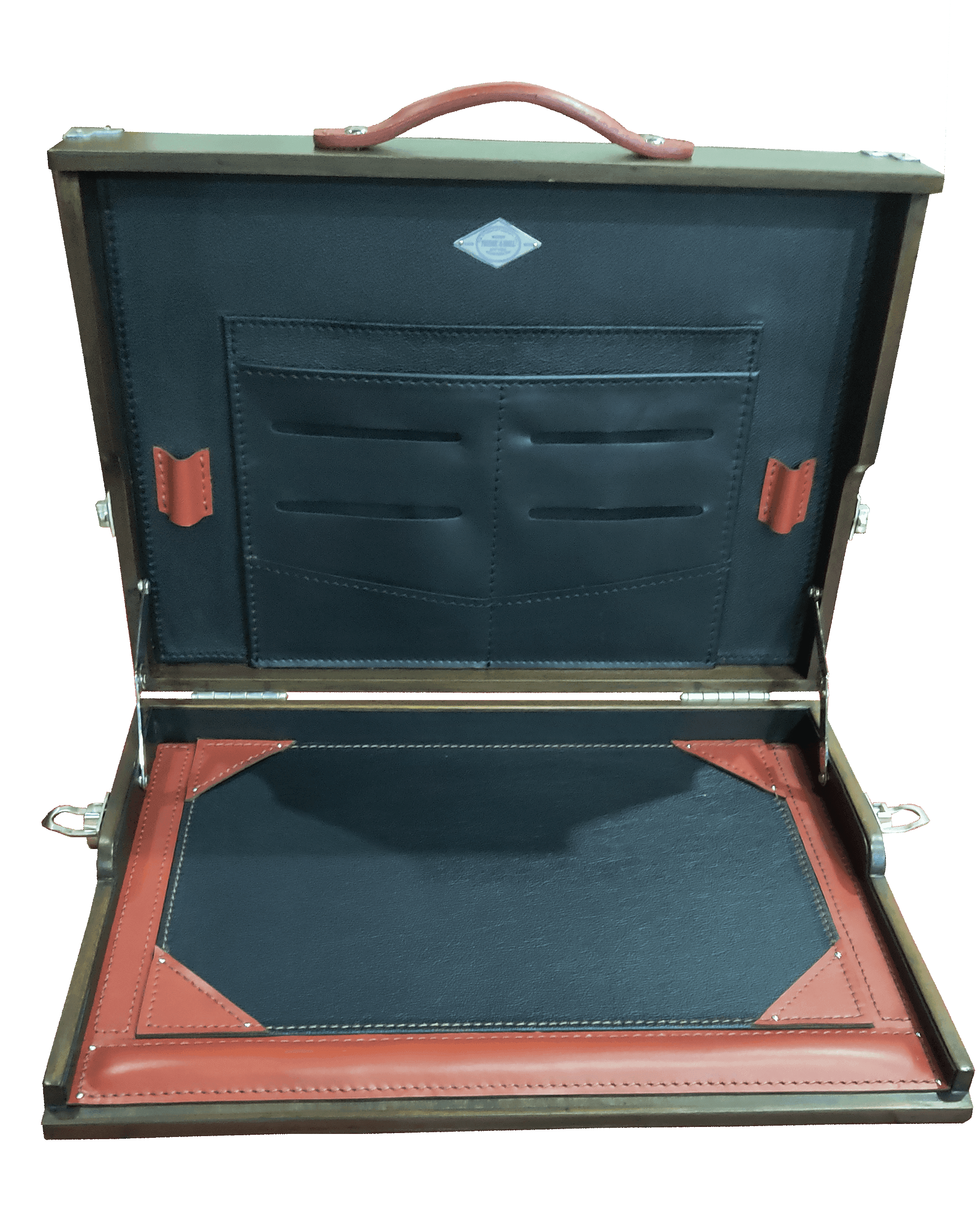 Hunters Croc Black, Red Burma Handle Exterior. Interior, Redburma trimmings with black vinyl and Nickel hardware and fittings.